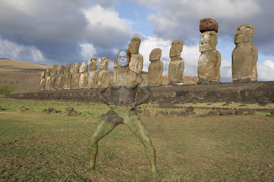 Знаменитая художница из Нью-Йорка Трина Мерри знаменита тем, что раскрашивает человеческие тела так, что они полностью сливаются с окружающей средой. Последним ее проектом было посещение самых известных и значимых на сегодня достопримечательностей. Сравнивая себя с туристами, которые бегом осматривают места и быстро щелкают свои сэлфи, Трина тщательно изучала каждое место и создавала в итоге свое видение "фотографии на фоне достопримечательности."