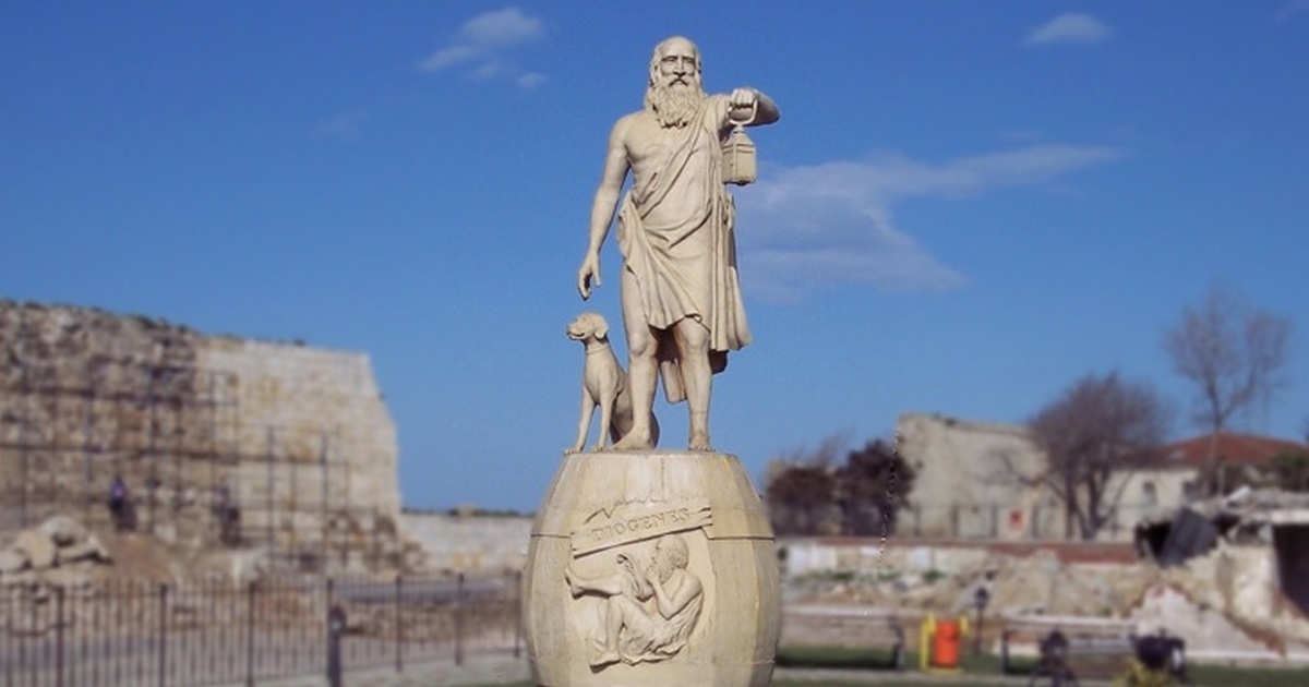 Он был циничным философом, который спал в бочке на Рыночной площади, и обычно его видели разгуливающим в набедренной повязке в сопровождении собак с фонарём. Он светил фонарём в лицо людям, ища честного человека.