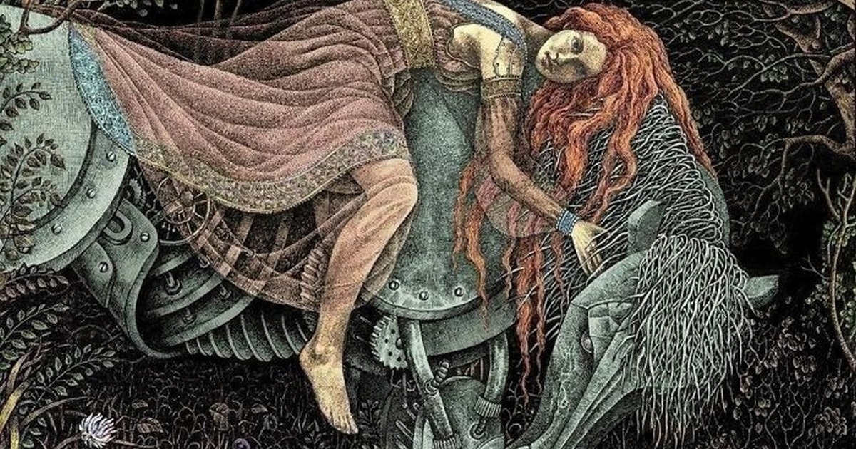 Эти детальные, изысканные, хотя и мрачные, иллюстрации, с их образами из мира легенд и сказок, сделаны обычной гелевой ручкой с последующей обработкой в графическом редакторе, и напоминают они изображения из старинных детских книг.
