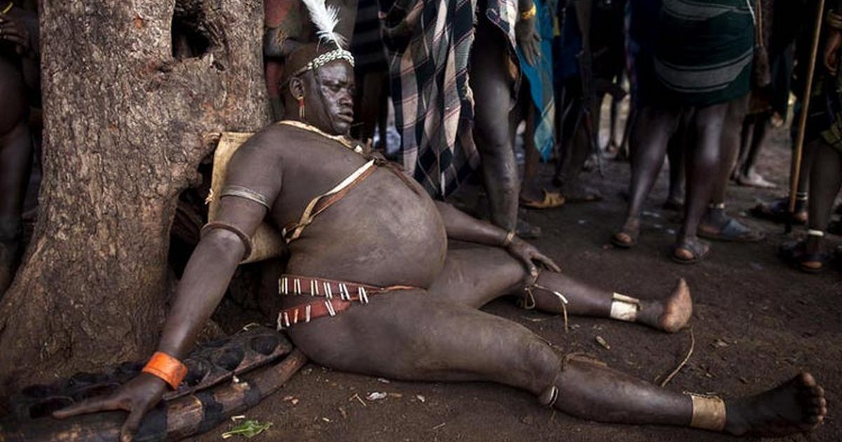 Жизнь различных племён в Эфиопии сытой назвать сложно, но глядя на отдельных представителей племени боди, невольно посещает мысль, а не бегают ли они на обеды в Макдональдс. И если мужчины из всех остальных эфиопских племён – это поджарые атлеты с ярко выраженной талией и мощными мускулами, то мужчины боди – этакие дородные мачо с огромными животами. Именно полных мужчин представители этого племени считают олицетворением достатка и здоровья.