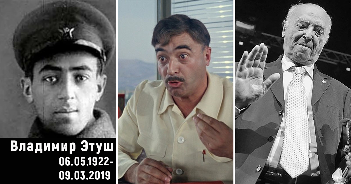 На его счету десятки ролей, среди которых самыми популярными стали герои комедий Леонида Гайдая и персонажи детских сказок. И каждая роль такая яркая, что зрители растащили их на цитаты. «Спортсменка, комсомолка и просто красавица!», «А еще боремся за звание дома высокой культуры быта…»,«Все! Все, что нажито непосильным трудом!», - сегодня эти фразы стали крылатыми. 9 марта 97-м году жизни скончался известный советский и российский актер театра и кино Владимир Этуш.
