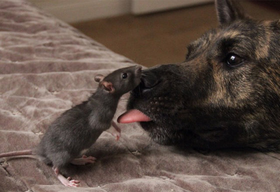 Немецкая овчарка и крыса.