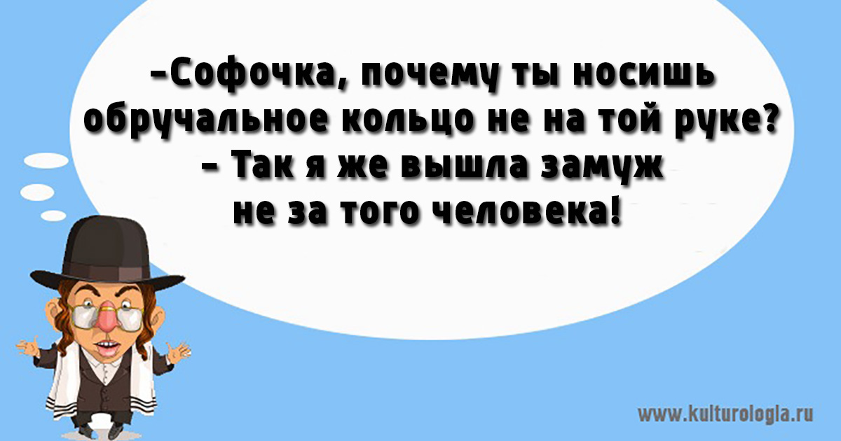 В нашем обзоре вы узнаете, почему Сонечка носит обручальное кольцо не на той руке, почему Абрам не считает нужным покупать автомобиль, что нужно сделать, чтобы муж купил жене самые дорогие сапоги и о чём расскажут в одесской женской консультации