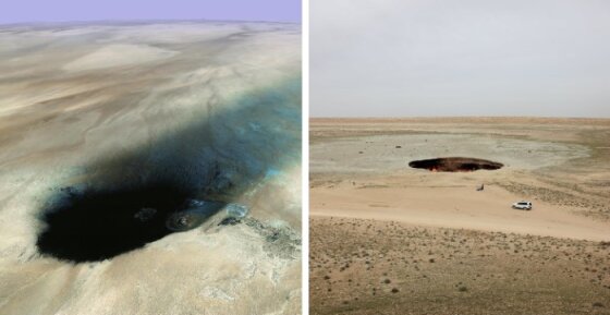Самая большая дыра в иранской пустыне называется "Дарваза" или "Врата в Ад", ее диаметр составляет около 70 метров, а глубина около 30 метров. Но наиболее интересной является ее история.