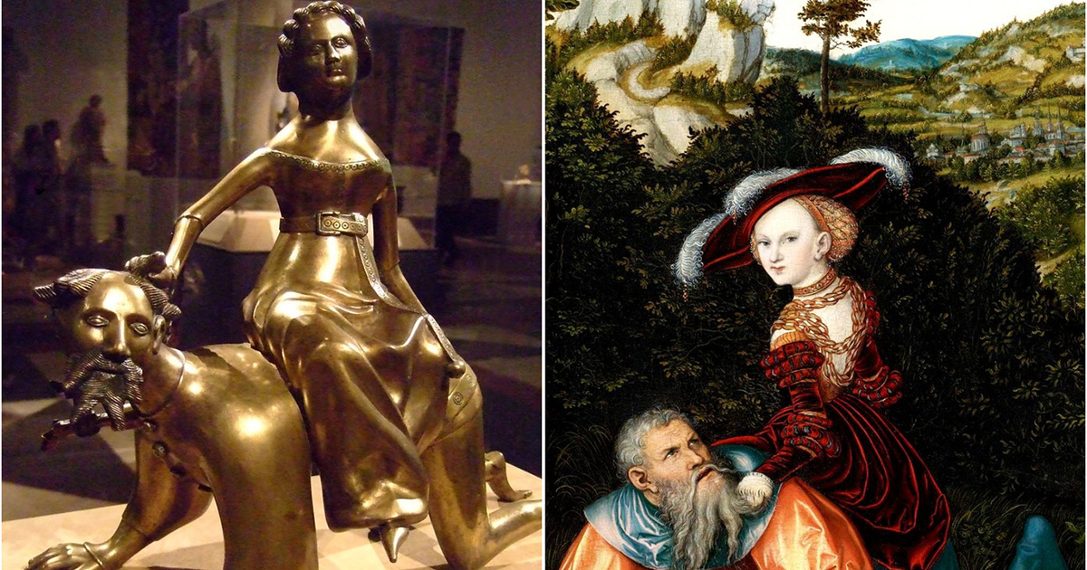 Подобные истории были весьма популярны во времена Средневековья. Унижение мудрого Аристотеля хитрой Филлис было запечатлено во всевозможных произведениях искусства. Эту сцену изображали на картинах, делали изваяния, ящики, колонны и даже скамейки. В то время высмеивание сильных и умных мужчин, обманутых и побеждённых женщинами, приобретало всё большую известность в обществе.