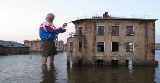 Фотографии затопленного города — это съемочные павильоны Ленфильма. Это может показаться странным, но даже в 21 веке на российских киностудиях спецэффектам предпочитают натуральные съёмки.