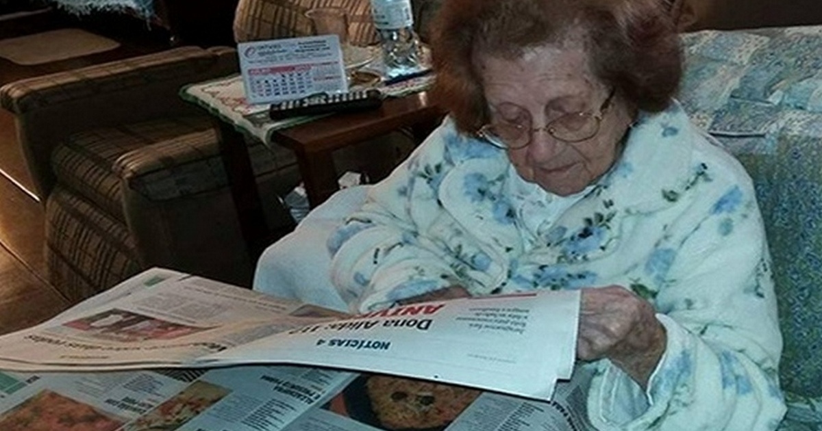 112-летняя Алисия Виктория Грабба Радж играет в карты, чтобы тренировать ум и память. Она родилась в бразильском Жарагуа-ду-Сул 10 июля 1903 года, и в настоящее время живет в Сан-Франциско-ду-Сул, Бразилия. Алисия вышла замуж за в 1926 году и у нее есть один сын. Сейчас эта пожилая женщина - старейший человек в Бразилии.
