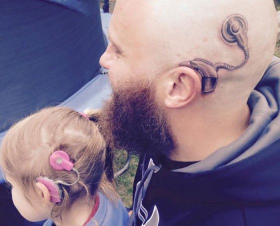 Чтобы поддержать дочурку, брутальный папа сделал себе тату в виде слухового аппарата