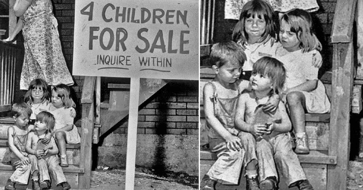В 1948 году почти все газеты Америки облетела фотография, на которой женщина выставила на продажу своих маленьких детей. В это сложно поверить, но это совсем не шутка… Что за трагическая история скрывается за этим душераздирающим снимком? И как сложилась жизнь у этих детишек?