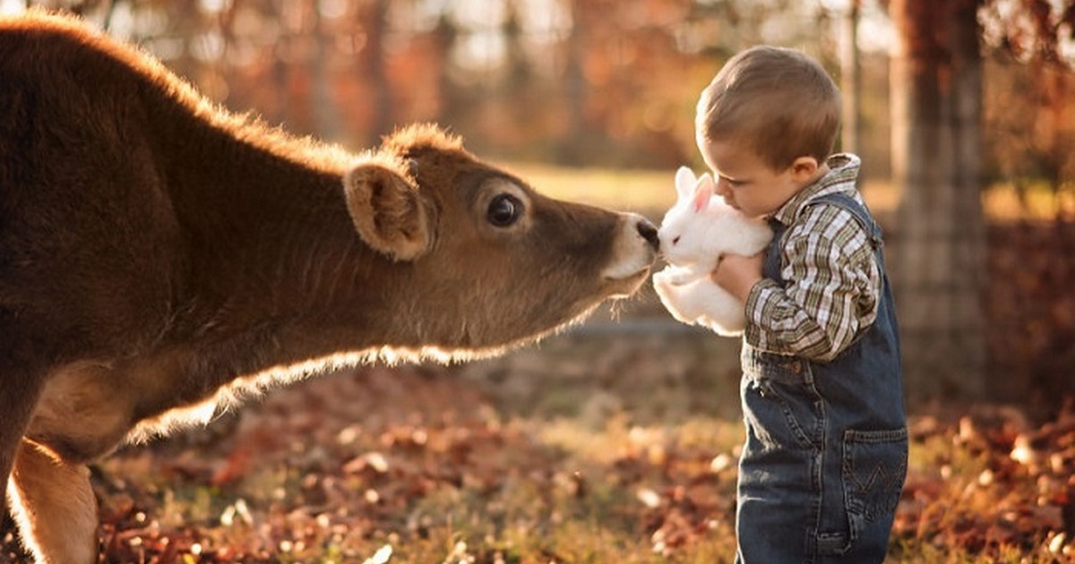 Домик в деревне: Фермер делает тёплые фотографии своих детей с домашними животными