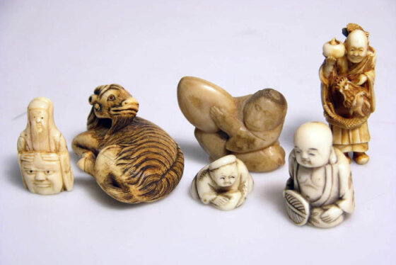 Нэцкэ, выполненные из разных материалов. / Фото: invaluable.com
