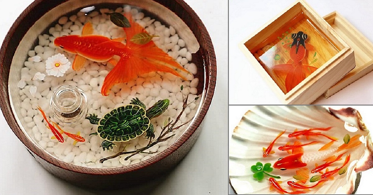 Китайская художница создает прекрасные 3D-картины в небольших контейнерах. Глядя на ее работы, кажется, что стоит только дотронуться – рыбки тут же начнут расплываться в разные стороны.