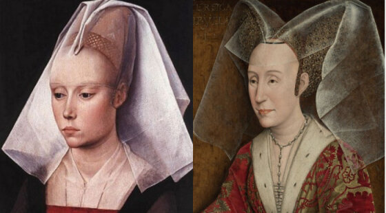 Из-за того, что волос не было видно под головными уборами, женщины казались лысыми. Это легко можно увидеть на портретах эпохи Возрождения. Например, на полотне Михаэля Пахера, где изображена герцогиня Мария Бургундская.