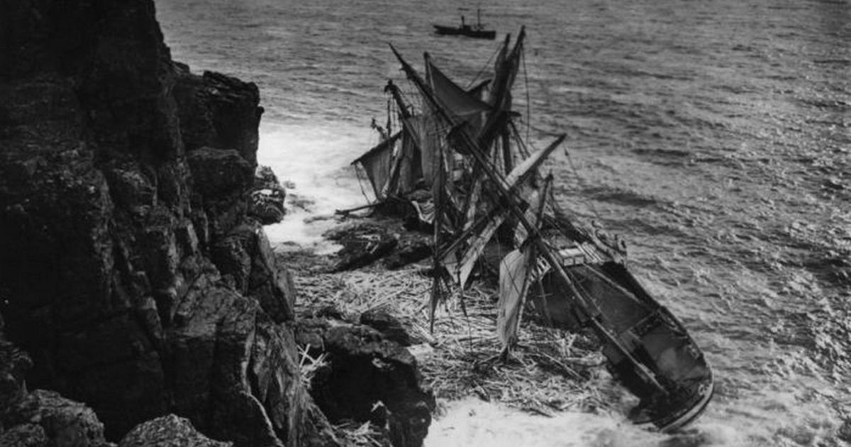 Британский парусный барк «The Cromdale» в густом тумане врезался в Лизард-Пойнт, самую южную точку британского материка.