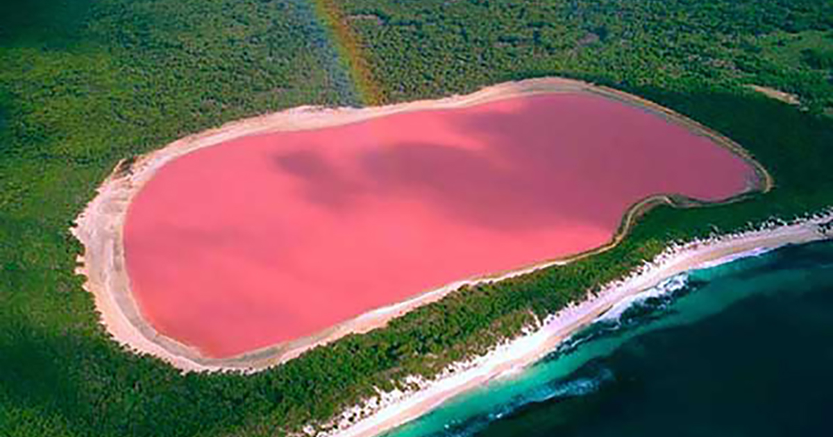Розовый цвет обусловлен наличием особой бактерии в воде.