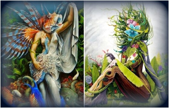 Художники — редкая порода людей, наделенных уникальным талантом формулировать свои идеи, мысли, мировоззрение с помощью красок, глины, графических изобразительных средств. Хотя, в зависимости от гендерной принадлежности, результат своего творчества они доносят до зрителя совершенно по-разному. В нашей публикации - творческий взгляд современных сюрреалистов Брайна Кирхагиса и Ханны Яты на преображенную природную красоту женщины, гармонично сочетаемую с элементами флоры и фауны. Предлагаем читателю оценить насколько противоположны мужская и женская точки зрения на красоту женского тела.
