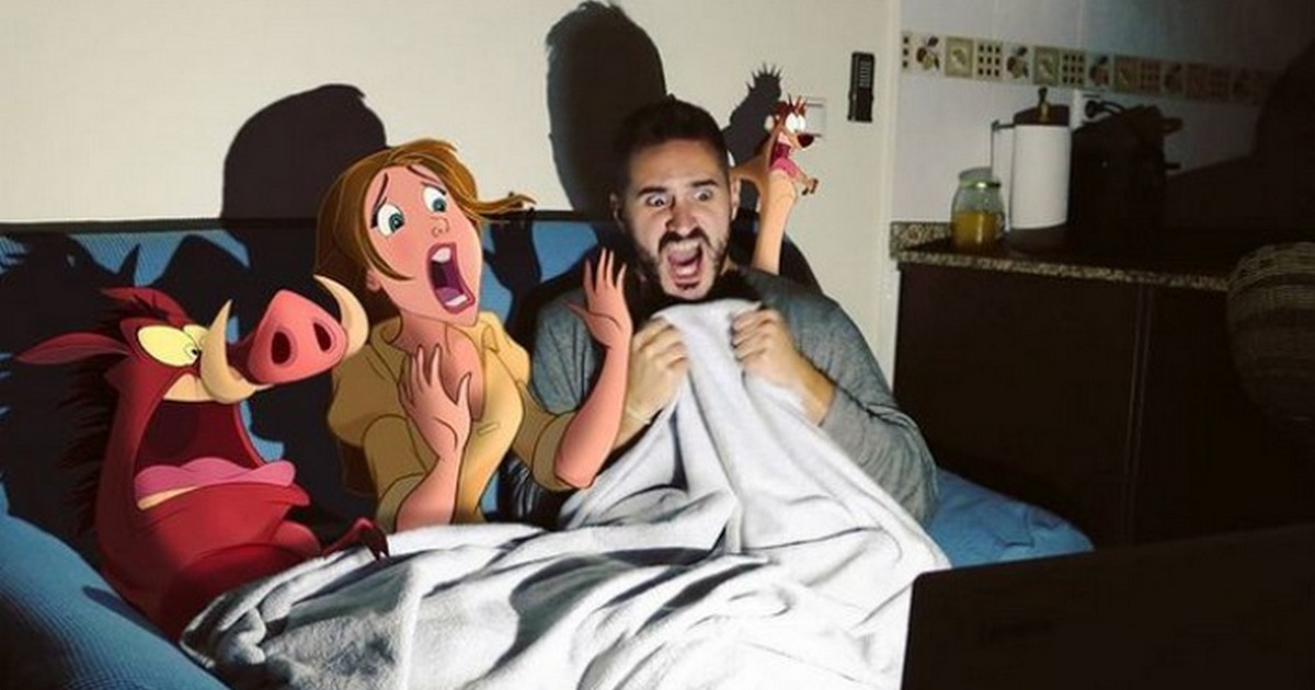 Кто из нас в детстве, просматривая диснеевские мультфильмы, не хотел оказаться среди их популярных героев – в гуще событий! Художник Сэмюэль из Испании, похоже, не утратил этой мечты и во взрослом возрасте. И воплотил ее в жизнь. Мужчина рисует персонажей из мультфильмов Диснея, вписывая их в современные бытовые сценки. Но самое забавное то, что в эти мини-истории он включает и самого себя.