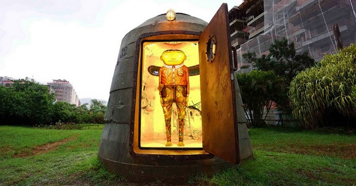 Известный дуэт художников-близнецов представил новую арт-инсталляцию, сделанную в виде рисованного человечка, заключенного в бетонный бункер. Эта установка является своеобразным протестом против чрезмерной и бесконтрольной застройки территории музея народного творчества и исторических артефактов, расположенного в Рио-де-Жанейро.