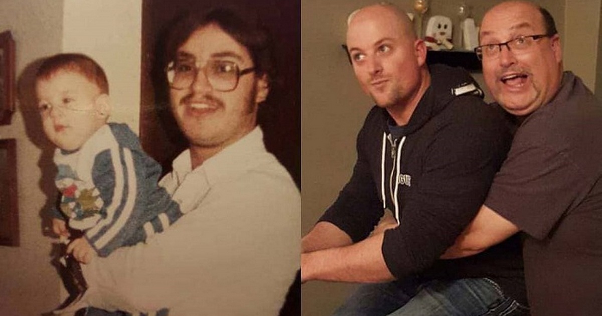 Повзрослевший сын выглядит точной копией своего отца в молодости.