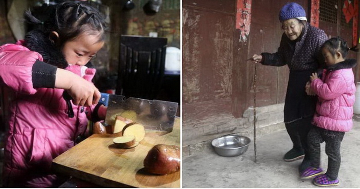 Испытания, которые выпали на долю пятилетней китаянки, вряд ли были бы под силу даже взрослому человеку. Сегодня малышка - сирота при живых родителях. Она живет в крохотной горной деревушке, и у нее на попечении бабушка и прабабушка. Ребенок приловчился выполнять всю работу по дому, ухаживать за старшими, но, по сути, лишился детства.