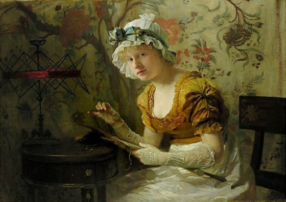 Сидящая леди со своим рукоделием. Автор: М. Мункачи.