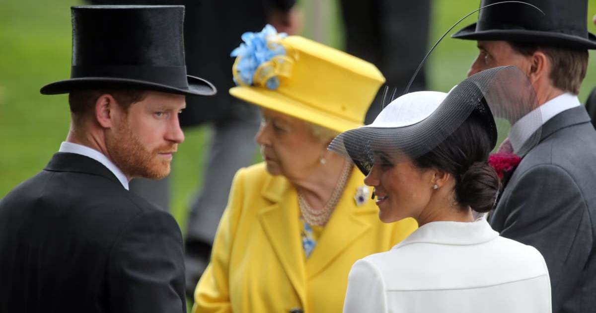 Королева Великобритании, принц Гарри и Меган Маркл. / Фото: www.pagesix.com