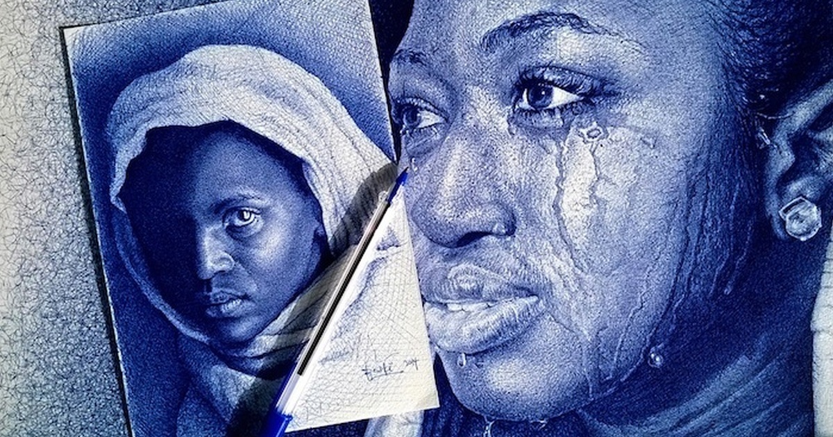 Африканский художник из Ганы Enam Bosokah рисует прекрасные реалистичные портреты людей обычной синей шариковой ручкой. Его работы невероятно подробны и полны эмоций. Они больше похожи на фотографии, снятые через голубой фильтр, нежели на рисунки.