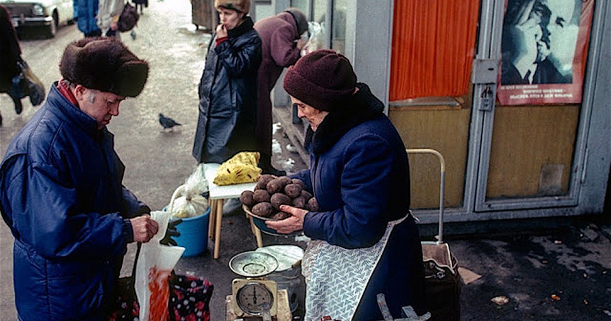 Интересная фотография из повседневной жизни советских граждан. СССР, Москва, 1989 год. Автор фотографии: Chris Niedenthal.