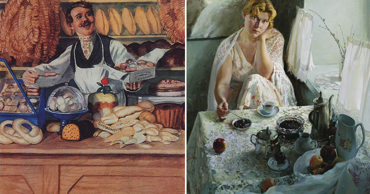 Калачи в булочной, запечатлённые Борисом Кустодиевым.