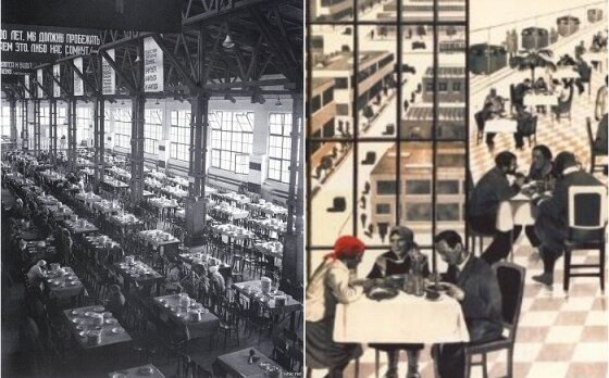 Советские фабрики-кухни представляли собой большие здания с общественной столовой, вмещающей сотни граждан, с магазинами, библиотеками, спортзалами и почтой. Если провести сравнение с современностью, то фабрика-кухня очень похожа на привычный торговый центр, где можно не только купить нужные вещи, но и перекусить и развлечься.