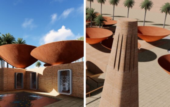 В затененных зонах температура воздуха значительно ниже, что позволяет стенам здания не перегреваться, а людям находить укрытие от жары. Такая форма крыши создает условия для циркуляции воздуха, что также способствует снижению температуры.