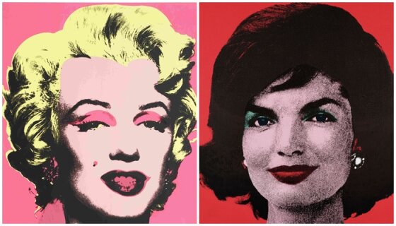 Используя американские СМИ и рекламу в картинах на шелкографии, икона поп-арта Энди Уорхол прославился на весь мир благодаря своим знаменитым работам с изображением банок «Campbell Soup». А чрезмерное увлечение художеством и коммерцией привело его к написанию легендарных женских портретов, таких как Мэрилин Монро, Элизабет Тейлор и других.