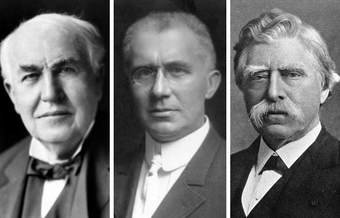 Томас Эдисон, Эмиль Берлинер и Дэвид Эдвар Хьюз, которые боролись за патент на микрофон