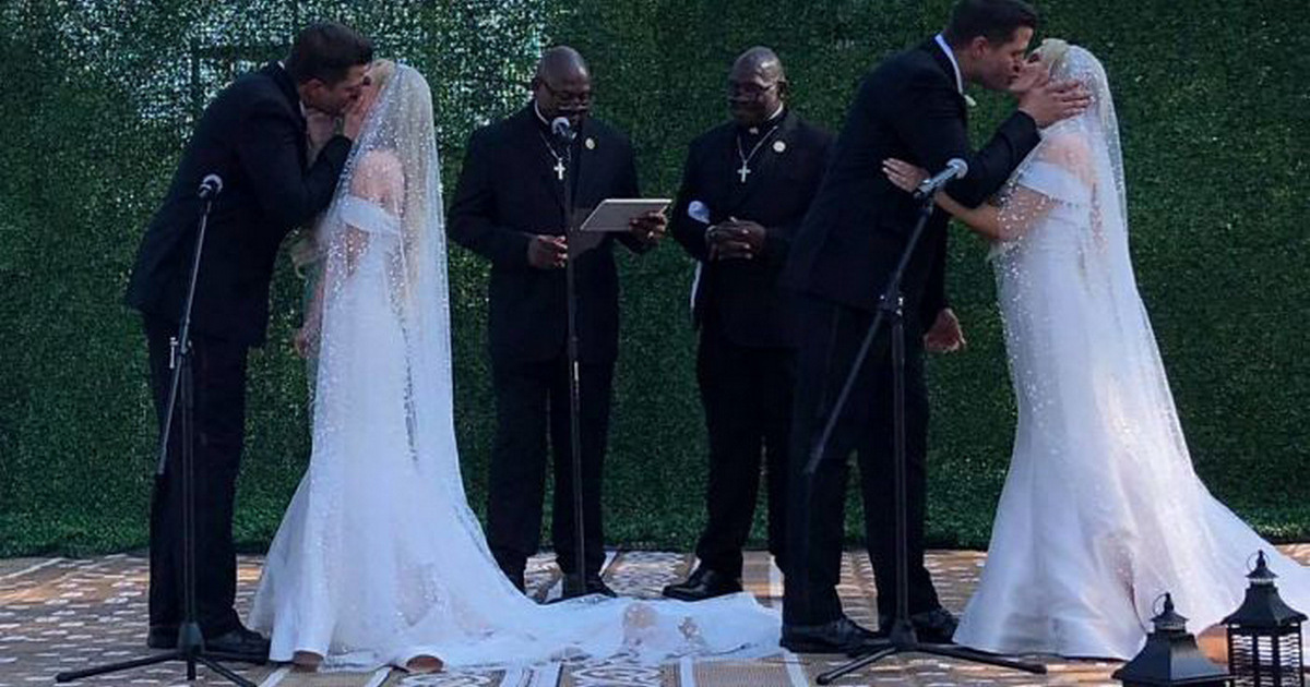 Близнецы женились на близняшках в окружении сотен других близнецов