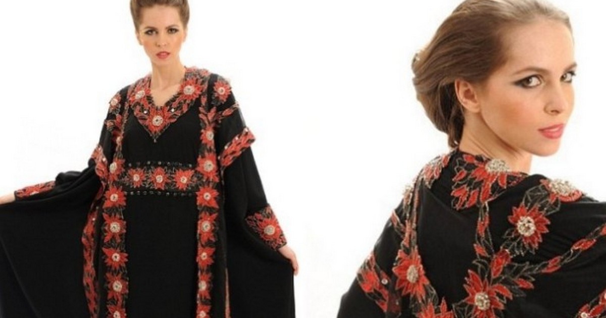 Наряд от Дебби Уингхэм представляет собой мусульманский наряд достаточно свободного кроя, причем изготовил ее британский модельер. Черное платье, сшитое в форме накидки, украшено двумя тысячами бриллиантов. В вышивке не только черные и белые камни, но и красные, которые считаются очень редкими и дорогими. Кроме того есть элементы из золотых нитей.