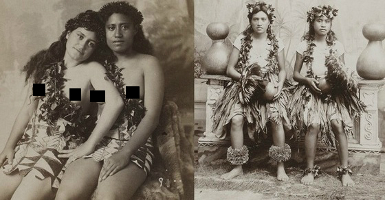 В конце 18 века знаменитый мореплаватель Джеймс Кук открыл миру Гавайские острова. Не стыдившиеся своей наготы коренные жительницы со временем стали прикрывать грудь кофтами, а то и вовсе носить длинные бесформенные платья. В этом обзоре представлены ретро-снимки женщин с островов, комично сочетающих европейскую одежду и традиционные одеяния.