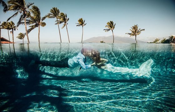 В лазурные водах отражаются жених и невеста. Автор фотографии: (Van Middleton) Ван Миддлтон.