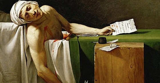 Марат был одним из самых важных журналистов и политических деятелей эпохи Великой французской революции. Первоначально будучи сторонником монархии, Марат в конце-концов стал пропагандировать экстремальное насилие, призывая своих читателей убить любого, кто выступал против революции. Но его откровенность стоила ему жизни. Марат страдал от серьезного кожного заболевания, единственным лекарством от которой тогда считались частые приемы ванны. Поэтому именно в ванне Марат писал большинство своих статей, а также принимал посетителей. 13 июля 1793 года его посетительница, дворянка Шарлотта Корде зарезала его в ванне.