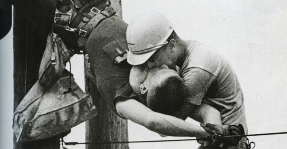 Фотография Рокко Морабито «Поцелуй жизни» (1967) очень известна. На ней запечатлены два электрика, Рэндалл Чампион и Джей Томпсон, висящие на столбе электропередач. Многие хихикают над этим снимком, другие недоумевают, но немногие знают историю её создания.