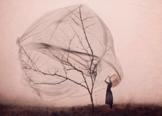 Полупрозрачные ткани, запутавшиеся в безжизненных ветках деревьев, блёклые пейзажи, окутанные пеленой тумана поглотившего одинокую женскую фигуру, застывшую в драматической позе – всё это и многое другое не только является неотъемлемой частью серии работ Кайли Спарр (Kylli Sparre), но и напоминает сцены извлечённые из мрачных сказок. И совсем неудивительно, что эти снимки способны вызвать у зрителя двоякие чувства, ведь царящая вокруг атмосфера – ничто иное, как воспоминания о далёком прошлом автора, некогда бывшей балериной.