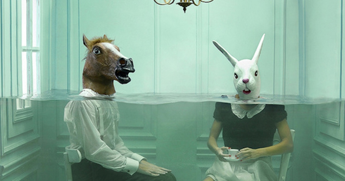 Лара Занкул (Lara Zankoul) – талантливая художница и фотограф из Ливана, автор потрясающей коллекции необычных снимков, на которых модели погружены в своеобразный аквариум, декорированный под комнату и наполовину заполненный водой. По задумке фотографа, верхняя часть туловища человека, оставшаяся на поверхности, отражает его сильную сторону, в то время как под водой материализуются страхи и переживания главного героя.