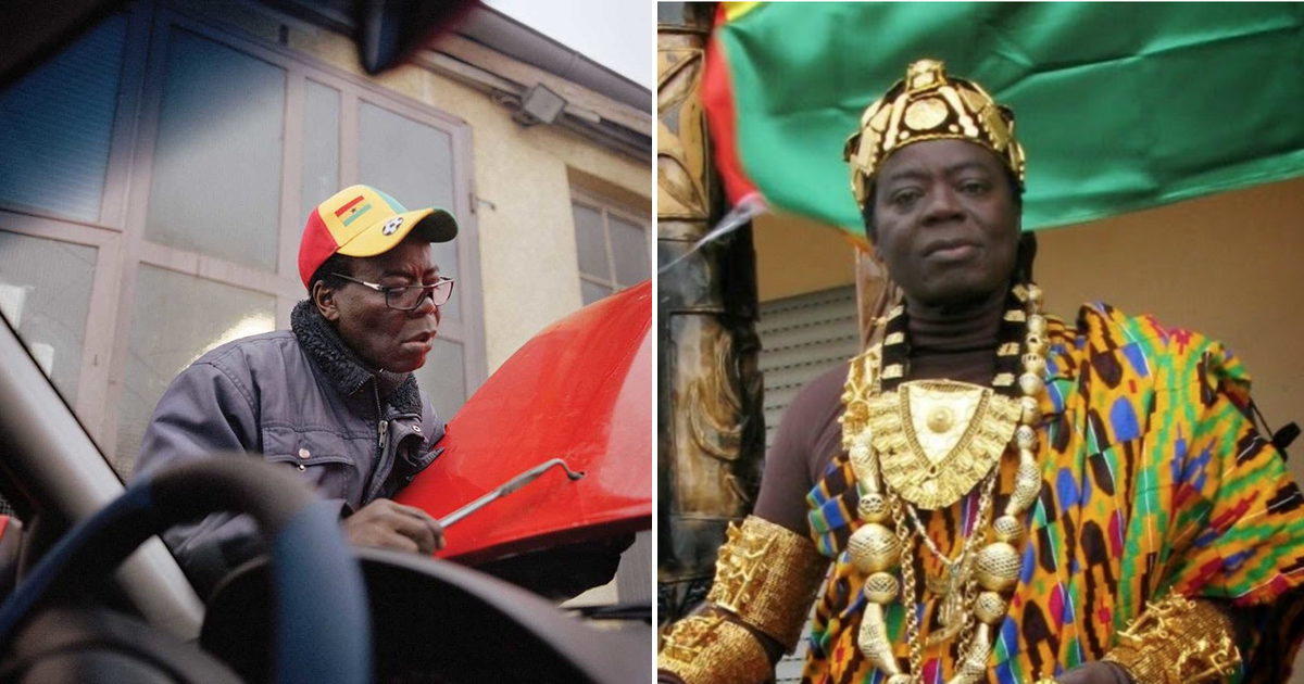 Кифа Коси Банса – верховный правитель территории Хохо в Гане. У него 200 тысяч подданных на Родине и ещё 2 миллиона представителей народа эве, живущих в Того. Сам же он живёт не в Гане и даже не в Тога, а в немецком городке Людвигсхафене и ведёт по-настоящему двойную жизнь. Утром он, как и все немцы, отправляется на работу, и проводит в автомастерской, ремонтируя машины, полный рабочий день. А когда возвращается домой, переодевается в королевский наряд и приступает к обязанностям по управлению своими африканскими подданными – разбирает монаршую электронную почту и даёт распоряжения по скайпу.