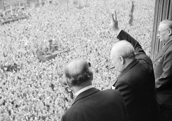 Учитывая всё то, что скрывалось за простым символом «V», совсем неудивительно, что в День Победы в 1945 году он был просто повсюду. В тот день Уинстон Черчилль выступил с импровизированной речью с балкона Уайтхолла, где он, конечно же, показал этот знак.