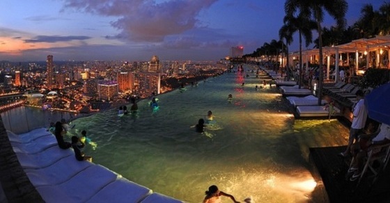 С бассейна Марина Бэй Сэндз открывается невероятнейший вид на город.