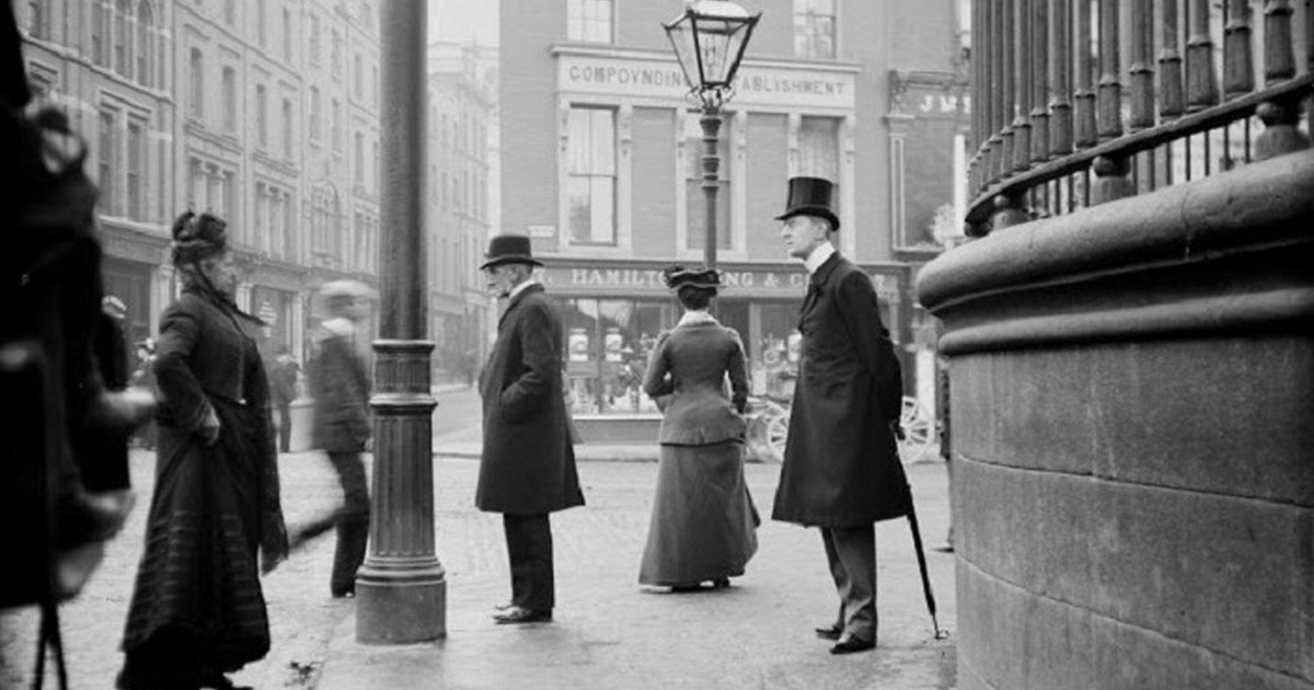 Был запечатлен на перекрестке Нассау-стрит, Графтон-стрит и Суффолк-стрит, Дублин, 1889 год.