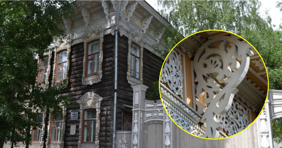 У этого удивительного здания открытый сруб, на фоне которого светлые «кружевные» наличники, обрамляющие большие окна, смотрятся особенно эффектно. Дом входит в число архитектурных жемчужин Томска.