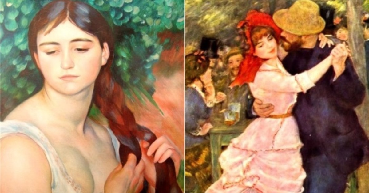 О. Ренуар. Слева – *Девушка, заплетающая косу*, 1885. Справа – *Танец в Буживале*, 1883. Фрагмент | Фото: artchive.ru