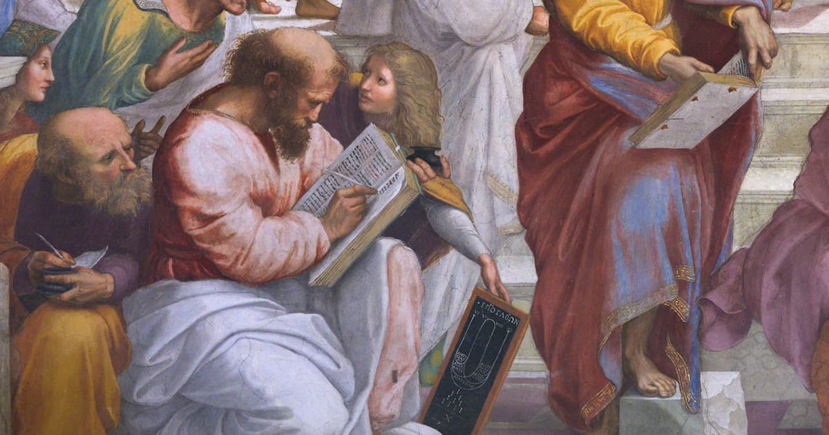 Возможное изображение Дамо с её отцом Пифагором в «Афинской школе» Рафаэля. / Фото: commons.wikimedia.org