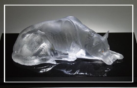 Еще одна уникальная камнерезная работа — «Друг», которая представляет собой собаку с большой детализацией проработки, вырезанную из цельного кристалла кварца. Работа, имеющая длину около 30см, очень эффектно смотрится на черной долеритовой подставке, которая как нельзя кстати, подчеркивает красоту резьбы и качество самого полупрозрачного минерала.