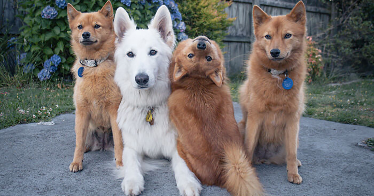 «Три рыжих собаки – это финские шпицы», - познакомила со своими питомцами их счастливая хозяйка Эшли Макферсон. «У нас есть Мика, которой три года. Другая рыжая собака - Тофу. Она дочь Мики, ей всего полтора года. Последняя рыжая - это Кико, которой 9 месяцев, и она очень любит озорничать таким образом. Она также дочь Мики. Это просто потрясающие собачки, нахальные... В этом они очень похожи на кошек. Они очень разговорчивы, и им есть что сказать. Это маленькие собаки с огромной душой и весёлым нравом».
